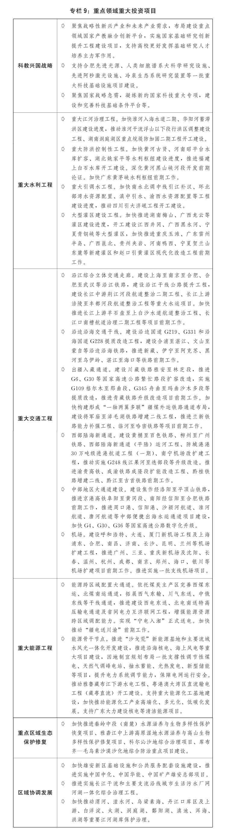 四是政府投資作用有效發(fā)揮。統(tǒng)籌用好中央預(yù)算內(nèi)投資、地方政府專項(xiàng)債券、2023年增發(fā)國債、超長期特別國債等支持重點(diǎn)項(xiàng)目建設(shè)。優(yōu)化中央預(yù)算內(nèi)投資投向領(lǐng)域,強(qiáng)化項(xiàng)目監(jiān)督管理。優(yōu)化地方政府專項(xiàng)債券管理機(jī)制,實(shí)施專項(xiàng)債券投向領(lǐng)域“負(fù)面清單”管理。加強(qiáng)項(xiàng)目謀劃儲備,強(qiáng)化用地、用海、用能、環(huán)評等要素保障,加強(qiáng)項(xiàng)目全生命周期管理。推動“十四五”規(guī)劃102項(xiàng)重大工程取得積極進(jìn)展。2023年1萬億元增發(fā)國債支持的1.5萬個(gè)項(xiàng)目加快實(shí)施,一大批災(zāi)后恢復(fù)重建和防災(zāi)減災(zāi)救災(zāi)能力提升項(xiàng)目按期建成。
