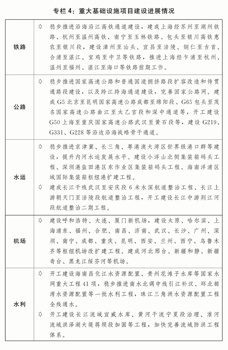 五是加快完善現(xiàn)代化基礎(chǔ)設(shè)施體系。高質(zhì)量推進(jìn)川藏鐵路等重大項(xiàng)目建設(shè),加快構(gòu)建國家水網(wǎng)工程體系,高水平共建西部陸海新通道。深入實(shí)施降低全社會物流成本專項(xiàng)行動。持續(xù)推進(jìn)國家物流樞紐、國家骨干冷鏈物流基地、國家綜合貨運(yùn)樞紐體系、大宗商品資源配置樞紐等布局建設(shè)。加快完善應(yīng)急物流體系。深入推進(jìn)公路水路交通基礎(chǔ)設(shè)施數(shù)字化轉(zhuǎn)型升級。推動各種運(yùn)輸方式規(guī)則標(biāo)準(zhǔn)統(tǒng)一協(xié)同,加快多式聯(lián)運(yùn)“一單制、一箱制”應(yīng)用。