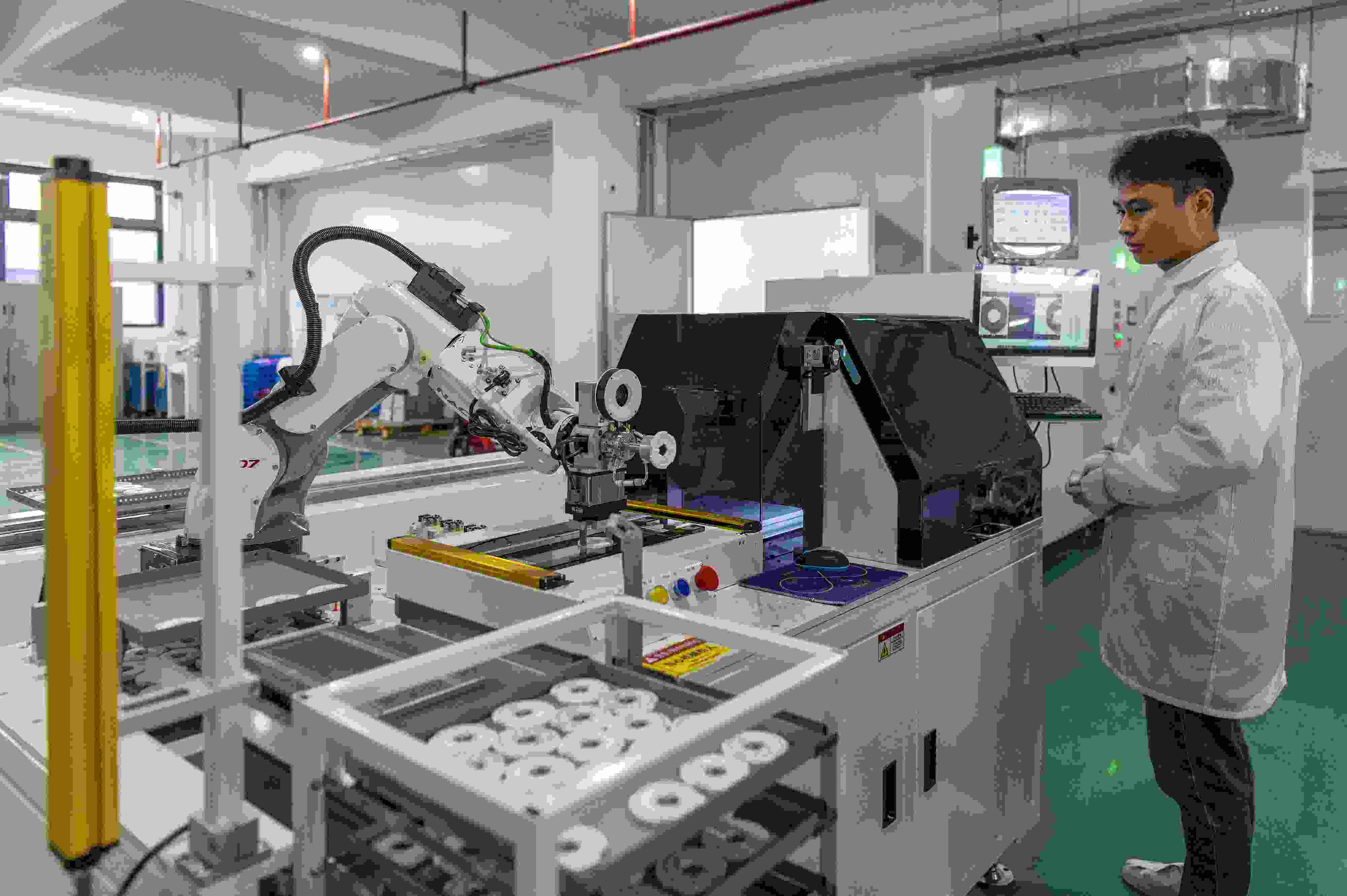 △2025年3月11日,在浙江省金華市浦江三思光電技術(shù)有限公司自動(dòng)化生產(chǎn)線上,一只只機(jī)械臂靈活運(yùn)轉(zhuǎn)著,趕訂單、忙生產(chǎn)。