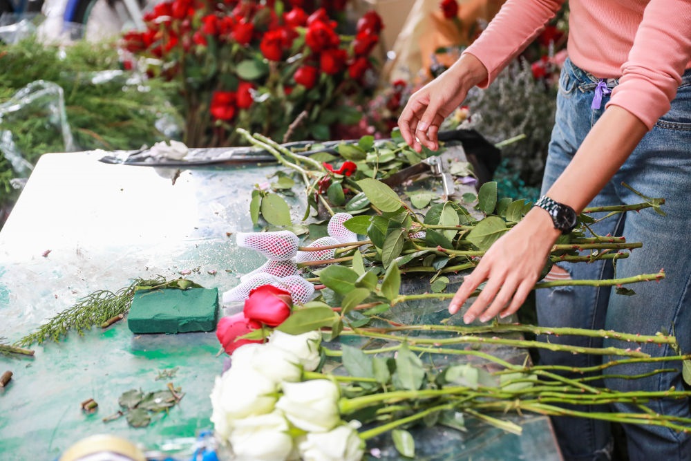 2019年2月14日,在泰國(guó)曼谷帕空鮮花市場(chǎng)的一家花店,工作人員將從云南進(jìn)口的鮮花制作成花束和花盒。東南亞是云南花卉的傳統(tǒng)市場(chǎng),在“一帶一路”倡議推動(dòng)下,中國(guó)與東南亞國(guó)家相互開放的產(chǎn)業(yè)合作,為雙方商貿(mào)活動(dòng)注入新動(dòng)力。隨著昆曼國(guó)際大通道打通,經(jīng)過采摘、分級(jí)、修枝、包裝、拍賣等過程,云南鮮花只需近40小時(shí)的冷鏈運(yùn)輸便可抵達(dá)曼谷。
