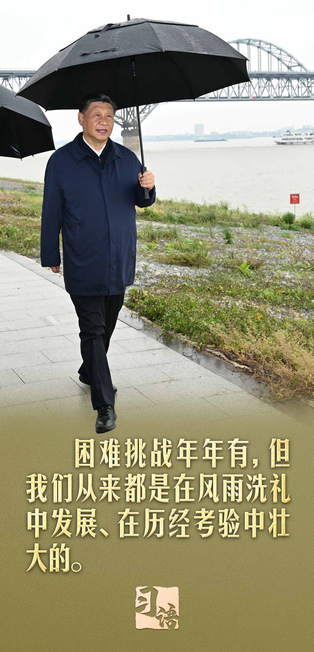 “遵道而行,但到半途須努力;會心不遠,要登絕頂莫辭勞”。在慶祝中華人民共和國成立75周年招待會上,習近平總書記引用南岳衡山這副對聯(lián)說道:“我們要居安思危、未雨綢繆,緊緊依靠全黨全軍全國各族人民,堅決戰(zhàn)勝一切不確定難預料的風險挑戰(zhàn)。任何困難都無法阻擋中國人民前進的步伐!”