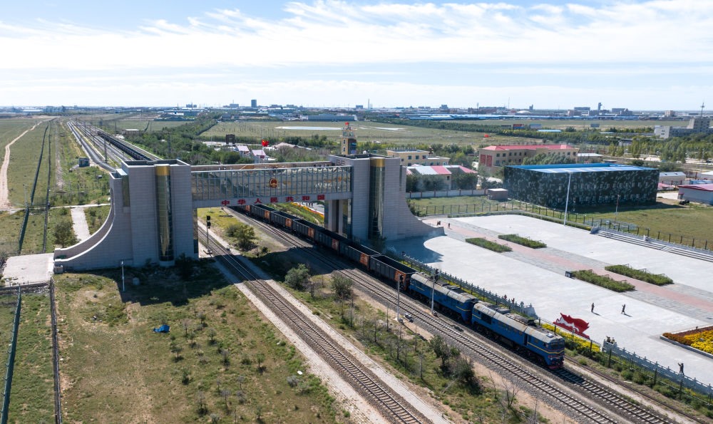 2024年8月20日,中歐班列在內(nèi)蒙古滿洲里口岸準(zhǔn)備出境(無人機(jī)照片)。滿洲里口岸位于中俄蒙三國交界處,是中國最大的陸路口岸,也是連接俄羅斯、蒙古國的重要樞紐。2024年,滿洲里口岸中歐班列通行量突破4000列,為推進(jìn)高質(zhì)量共建“一帶一路”注入新動能。
