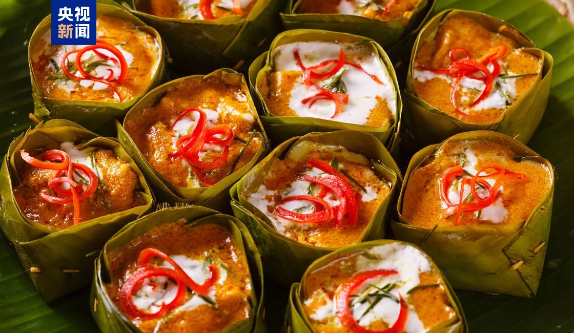 國(guó)菜阿莫克魚(yú)(Amok)用椰奶咖喱蒸魚(yú),再用香蕉葉包裹,香氣四溢。