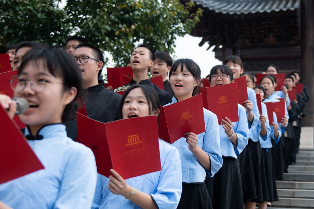 2023年9月4日,武漢市武昌區(qū)2023年秋季開學思政課在湖北省武昌實驗中學開講,這是學生在誦讀《惟楚有材賦》。這堂思政課以“傳承武昌古城千年文脈,爭做守正創(chuàng)新時代新人”為主題,通過“實景體驗+課堂展示”的形式,講述武昌古城1800年文脈的歷史與傳承,為該校學生帶來一場沉浸式課堂體驗。