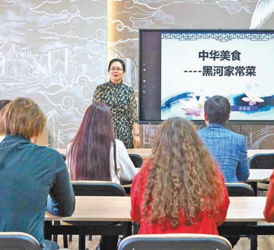 在俄羅斯布拉戈維申斯克國立師范大學孔子學院,中國老師在授課。
