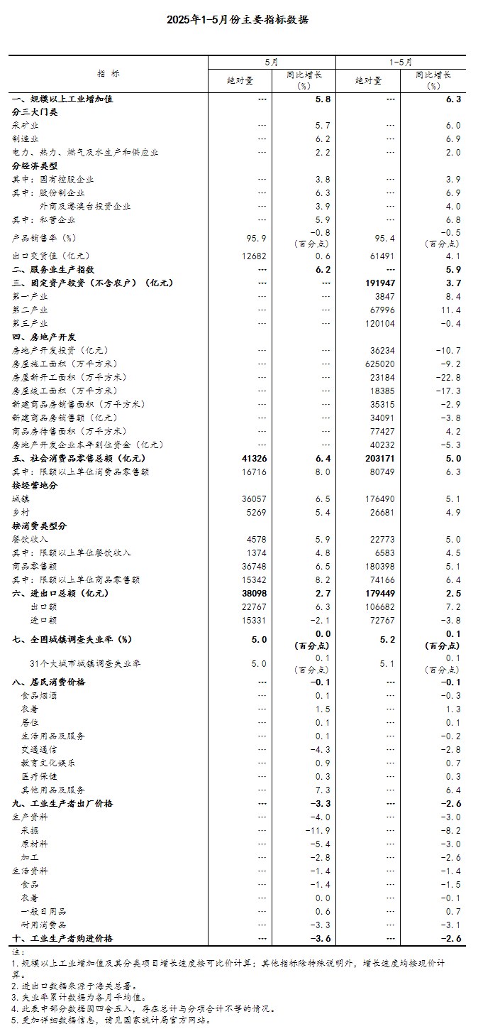 國家統(tǒng)計局:5月份國民經(jīng)濟運行總體平穩(wěn)、穩(wěn)中有進