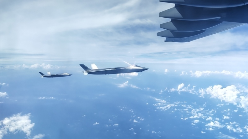 9月12日,第十二批在韓中國人民志愿軍烈士遺骸回國。這是為接運(yùn)烈士遺骸回國的運(yùn)-20專機(jī)伴飛護(hù)航的殲-20飛機(jī)。