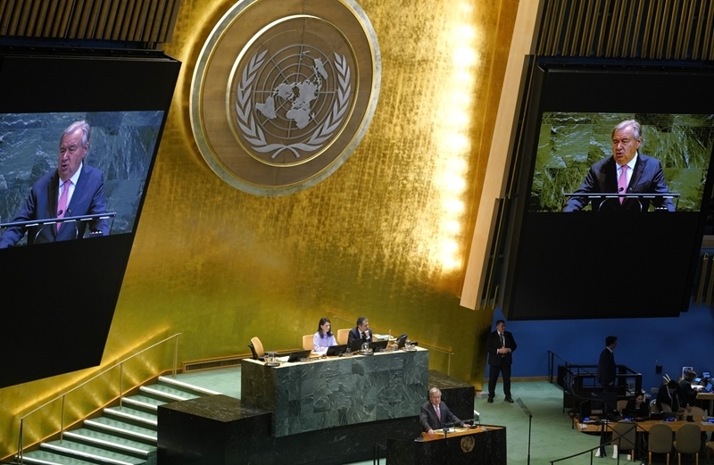 9月22日,在位于紐約的聯(lián)合國總部,聯(lián)合國秘書長古特雷斯在紀(jì)念北京世婦會(huì)30周年高級(jí)別會(huì)議上講話。