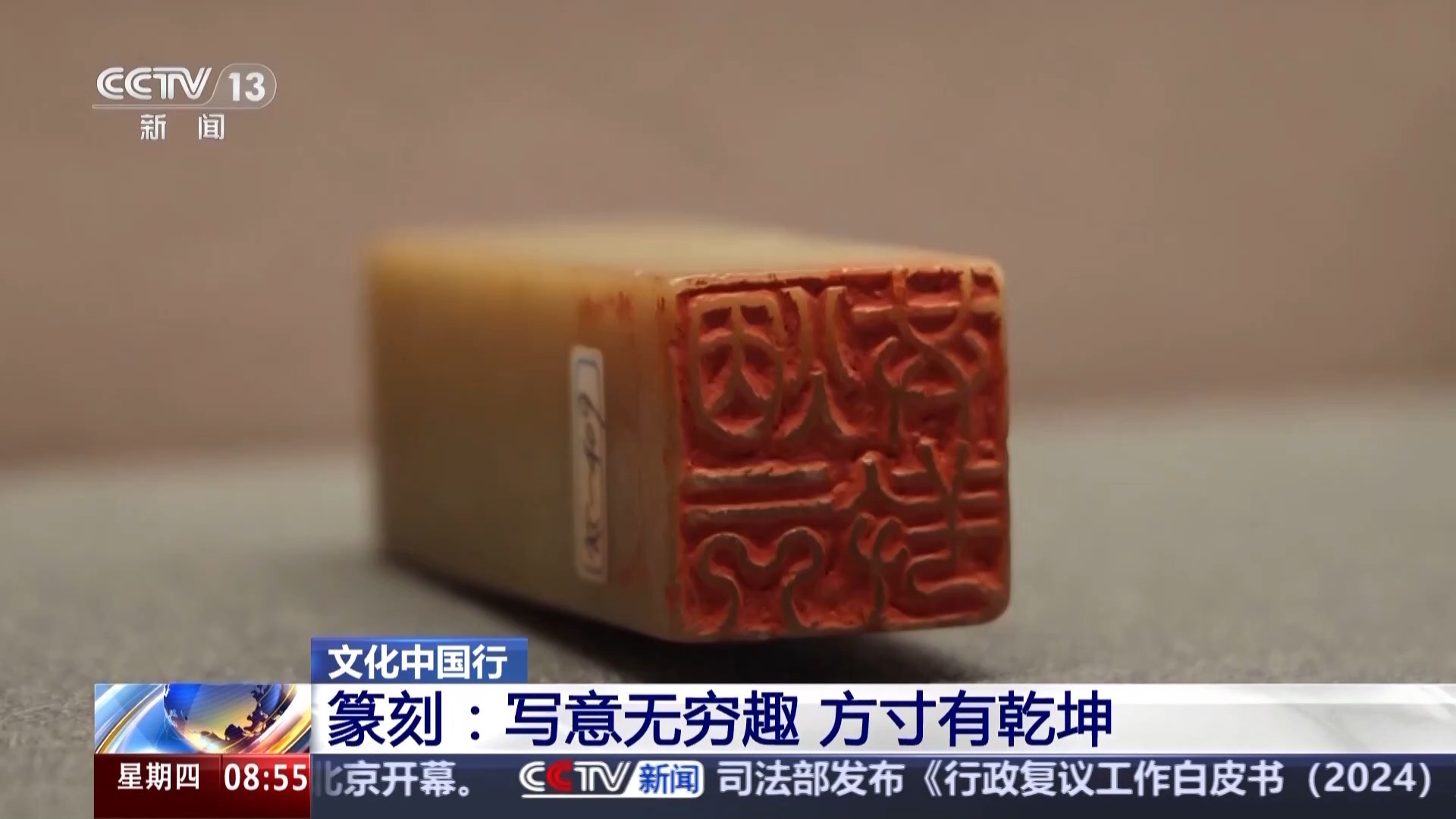 中國(guó)藝術(shù)研究院篆刻院院長(zhǎng) 駱芃芃:篆刻藝術(shù)是用文字為表現(xiàn)對(duì)象的,主要是以篆書(shū)為主。它可以拉長(zhǎng)可以縮短,這么抽象的幾個(gè)線(xiàn)條能表達(dá)那么豐富的意思,這就是我們中國(guó)人對(duì)世界哲學(xué)最偉大的貢獻(xiàn)之一。