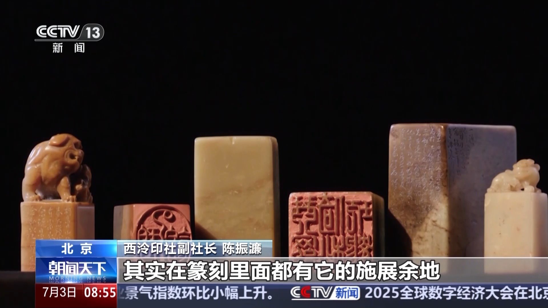 西泠印社副社長(zhǎng) 陳振濂:或者是流暢的,或者是坎坷的,各種各樣的線(xiàn)條,其實(shí)在篆刻里面都有它的施展余地。一起一伏一頓一挫里面都是生命的脈動(dòng)。