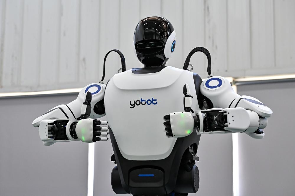 7月3日,在位于安徽省蕪湖市的科技公司內(nèi),一款人形機(jī)器人在做手勢(shì)。新華社記者 張鋮 攝