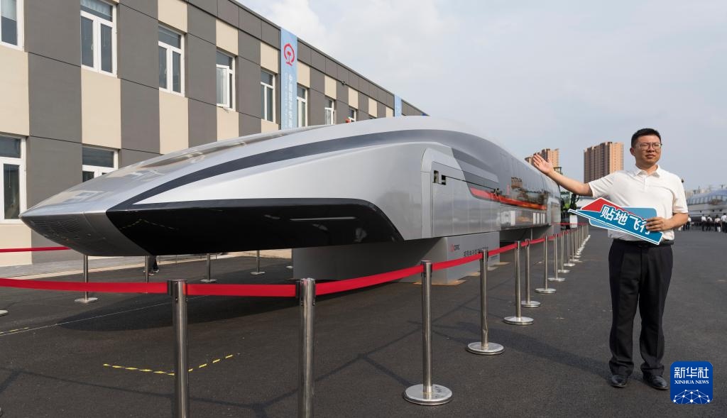 這是7月9日在國家鐵道試驗中心展區(qū)拍攝的時速600公里高速磁浮交通系統(tǒng)。新華社記者 才揚(yáng) 攝