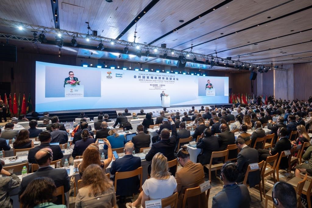 金磚國家媒體智庫高端論壇當(dāng)?shù)貢r間16日在巴西里約熱內(nèi)盧舉行。來自包括金磚成員國及伙伴國在內(nèi)的36個國家近150家媒體、智庫、政府機構(gòu)和企業(yè)以及中美洲議會等地區(qū)組織的250余名代表出席論壇,共話金磚國家媒體智庫在世界變局中的責(zé)任與擔(dān)當(dāng)。