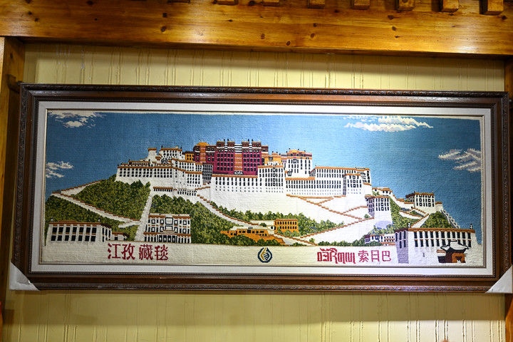 “江孜藏毯生產需要經過洗毛、紡紗、染色、編織、剪花等步驟,我們在染色和編織兩個環(huán)節(jié)做了一些工藝上的提升,從而使產品達到3D的視覺效果?!钡┰龇Q來說。