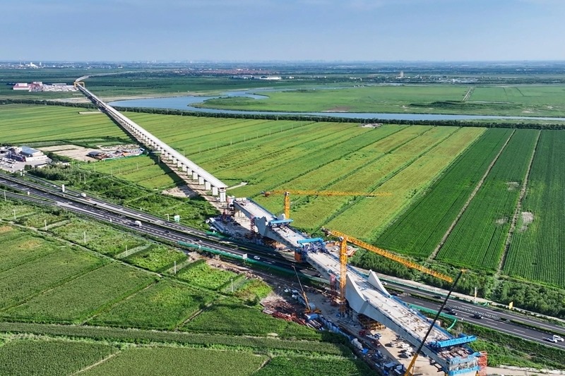 津?yàn)H高鐵山東段最大跨度連續(xù)梁合龍