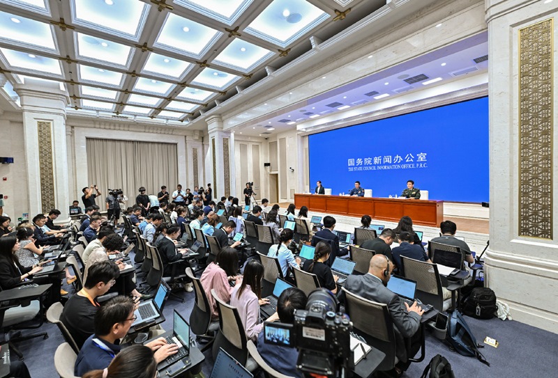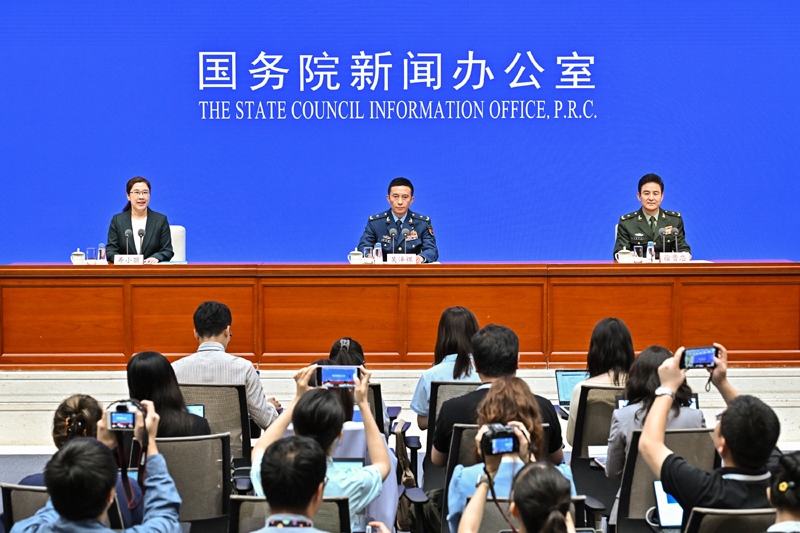 8月20日,國務(wù)院新聞辦公室在北京舉行新聞發(fā)布會,閱兵領(lǐng)導(dǎo)小組辦公室副主任、中央軍委聯(lián)合參謀部作戰(zhàn)局少將副局長吳澤棵,中國人民解放軍中部戰(zhàn)區(qū)閱兵指揮機構(gòu)辦公室常務(wù)副主任、政治工作部少將副主任徐貴忠介紹閱兵準(zhǔn)備工作有關(guān)情況,并答記者問。