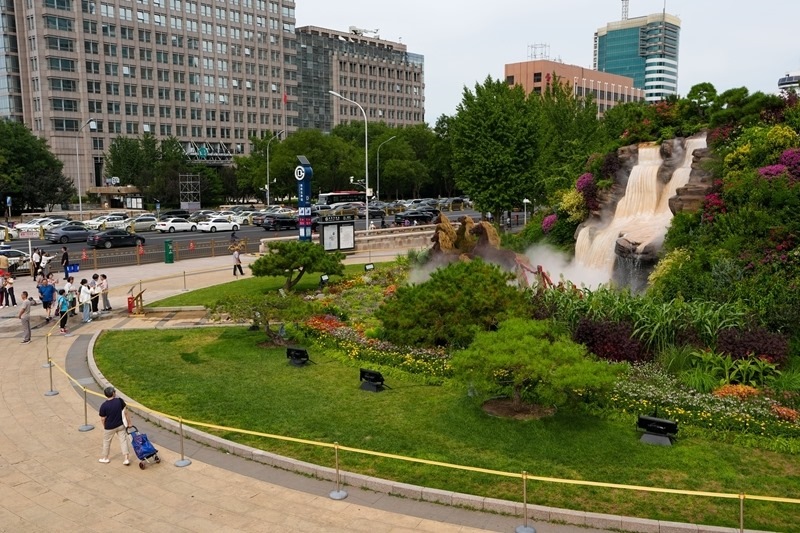 8月26日,人們在北京復(fù)興門參觀“美好明天”花壇。