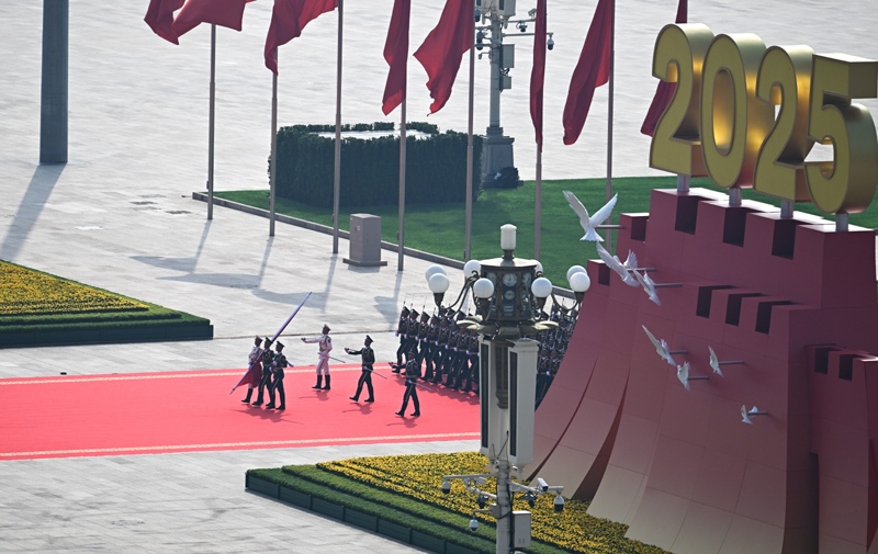 9月3日,紀(jì)念中國(guó)人民抗日戰(zhàn)爭(zhēng)暨世界反法西斯戰(zhàn)爭(zhēng)勝利80周年大會(huì)在北京隆重舉行。這是標(biāo)兵就位。
