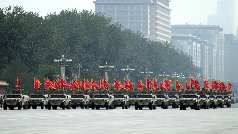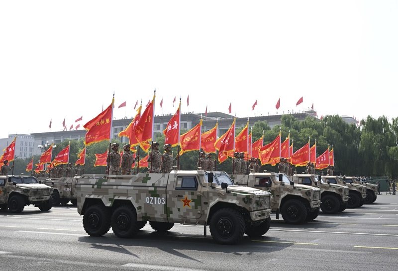 9月3日,紀(jì)念中國人民抗日戰(zhàn)爭暨世界反法西斯戰(zhàn)爭勝利80周年大會在北京隆重舉行。這是地面突擊方隊(duì)接受檢閱。
