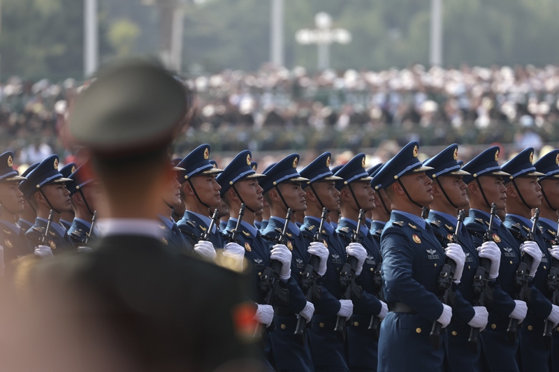9月3日,紀(jì)念中國人民抗日戰(zhàn)爭暨世界反法西斯戰(zhàn)爭勝利80周年大會在北京隆重舉行。這是空軍方隊(duì)接受檢閱。
