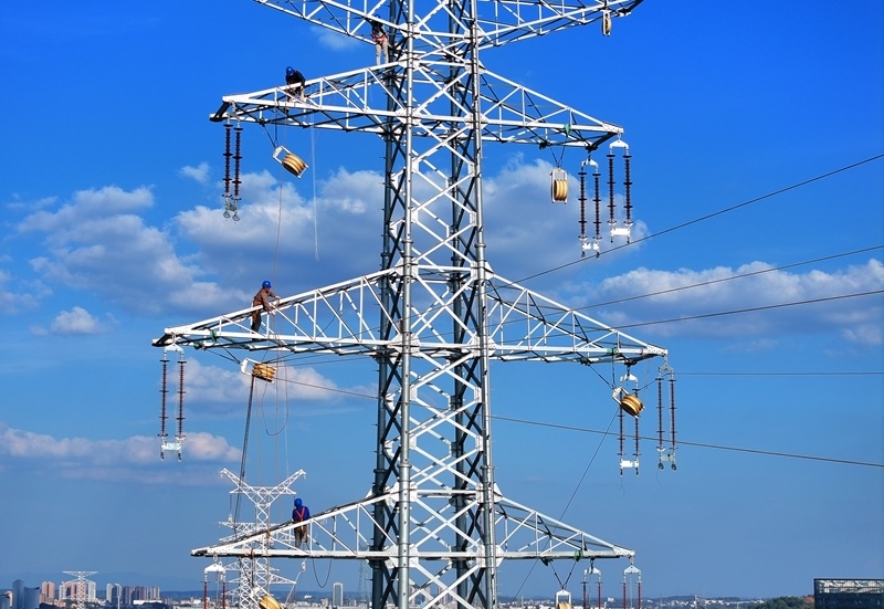 10月3日,在湖南省衡陽市雁峰區(qū)岳屏鎮(zhèn),施工人員在真武-麻塘220千伏線路改造工程項目開展架線施工作業(yè) (無人機照片)。