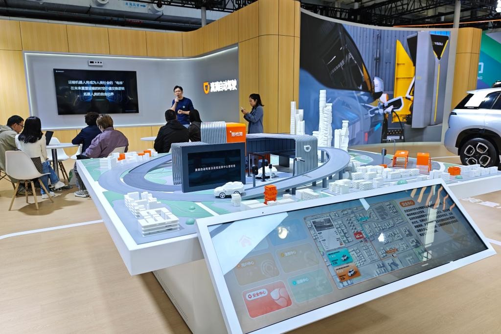 在滴滴自動(dòng)駕駛展臺(tái),智能沙盤展示全無人Robotaxi運(yùn)營場景。新華社記者 唐詩凝 攝