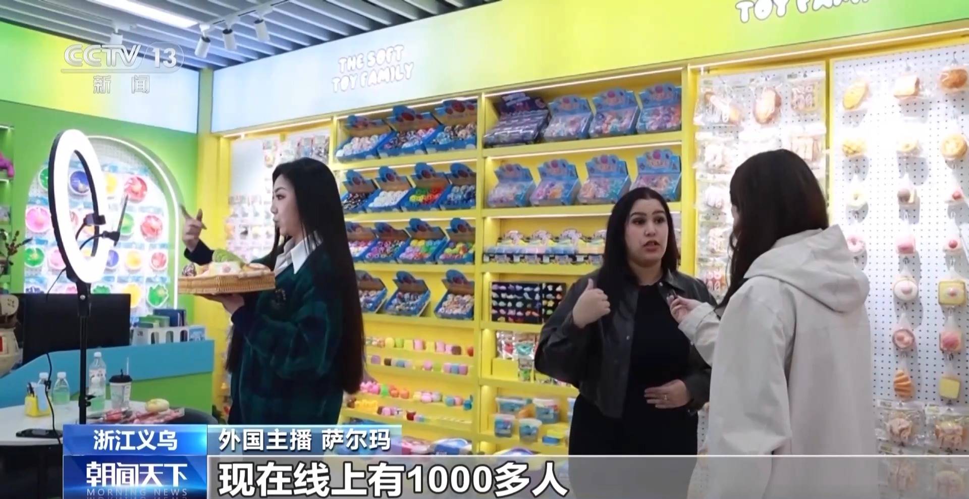 外國(guó)主播 薩爾瑪:生意很棒,現(xiàn)在線上有1000多人,過去1個(gè)小時(shí)我們賣出了500多個(gè)訂單。我是走播,一家一家地推廣產(chǎn)品。義烏的產(chǎn)品非常受歡迎,大家都喜歡這里的品質(zhì)和價(jià)格。