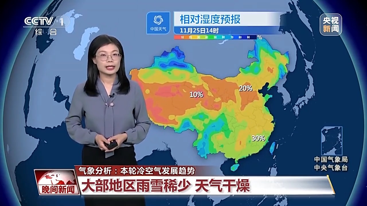 冷空氣帶來的雨雪并不多,而且在偏北風吹拂之下,天氣會非常干燥。像是西北華北等地,午后的相對濕度可能只有20%左右,局部地區(qū)甚至不足10%,就連南方相對濕度也只有30%上下,所以整體都會是比較干燥的狀態(tài),大家要及時補充水分,并且注意用火安全。