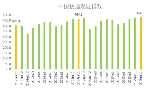 2023年11月-2025年11月中國(guó)快遞發(fā)展指數(shù)