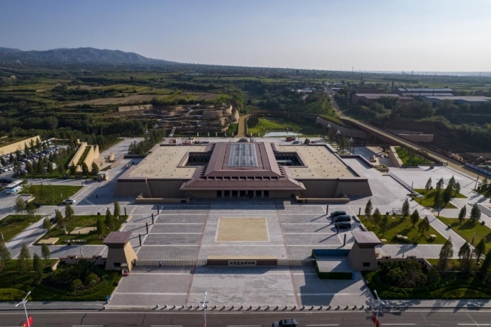 從空中俯瞰陶寺遺址博物館,外觀設(shè)計呈現(xiàn)一個“中”字。(資料圖)新華網(wǎng)發(fā)(王梓軒攝)