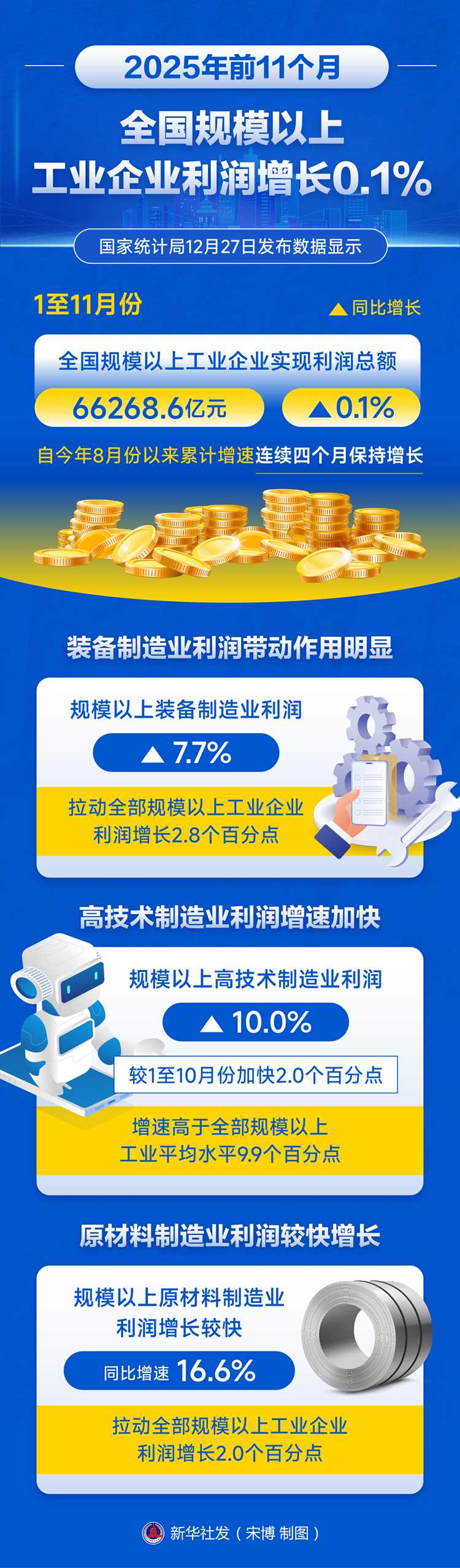 前11個(gè)月全國(guó)規(guī)模以上工業(yè)企業(yè)利潤(rùn)增長(zhǎng)0.1%