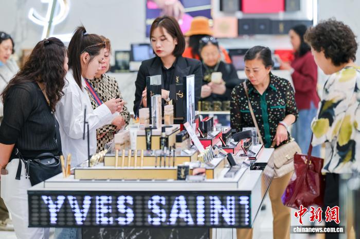 1月18日,顧客在cdf??趪H免稅城選購化妝品。海南自貿(mào)港封關(guān)首月,離島免稅市場火爆。 中新網(wǎng)記者 駱云飛 攝