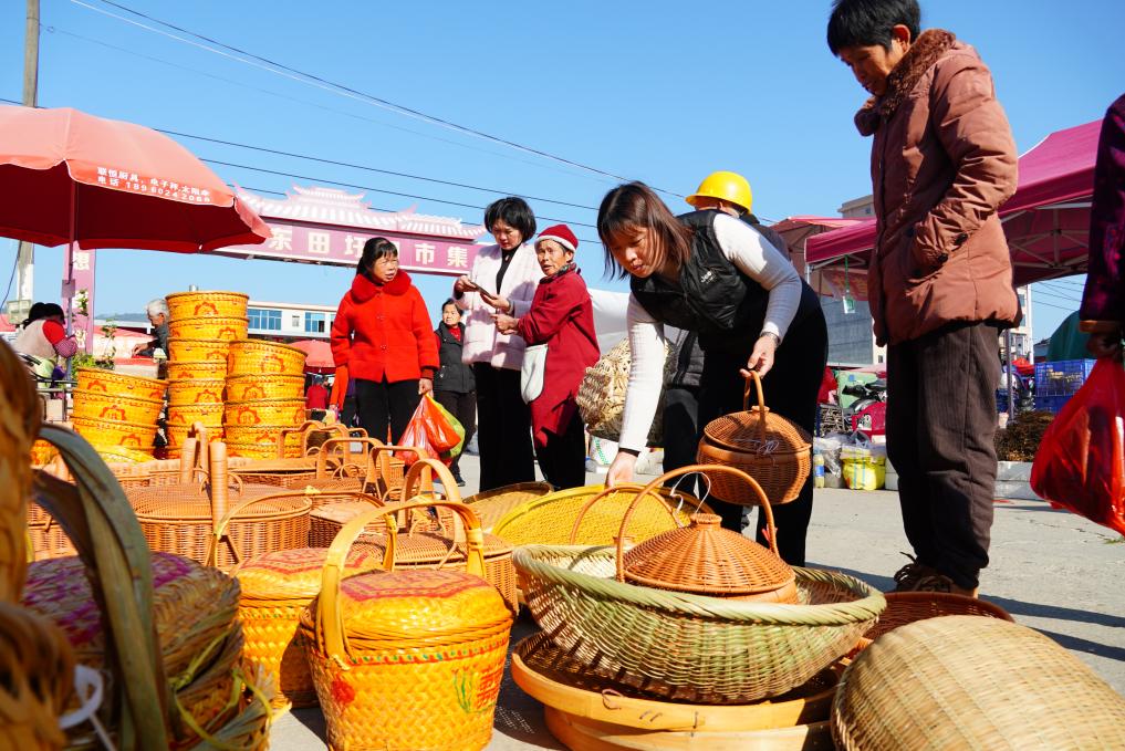 一些南方地區(qū)稱村鎮(zhèn)市集為“圩”。東田鎮(zhèn)“趕圩”的歷史悠久,至今已延續(xù)400多年。一位攤主告訴記者,“農(nóng)歷每月逢四逢九的日子便是東田鎮(zhèn)的趕圩日。年關(guān)前的集日人尤其多,大家都在熱熱鬧鬧地囤年貨。”
