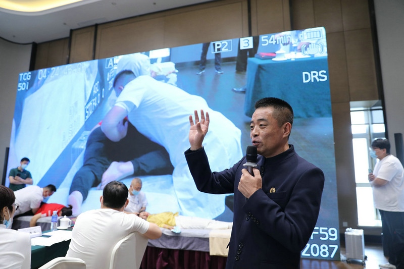 會(huì)上,御骨非物質(zhì)文化遺產(chǎn)保護(hù)有限公司董事長、孫氏御骨術(shù)創(chuàng)始人孫亞臣介紹了發(fā)起技術(shù)操作規(guī)范編制的詳細(xì)情況。為了讓評(píng)審專家更加直觀的了解該技術(shù),御骨老師們進(jìn)行了現(xiàn)場實(shí)操,專家組給予了一致好評(píng)。