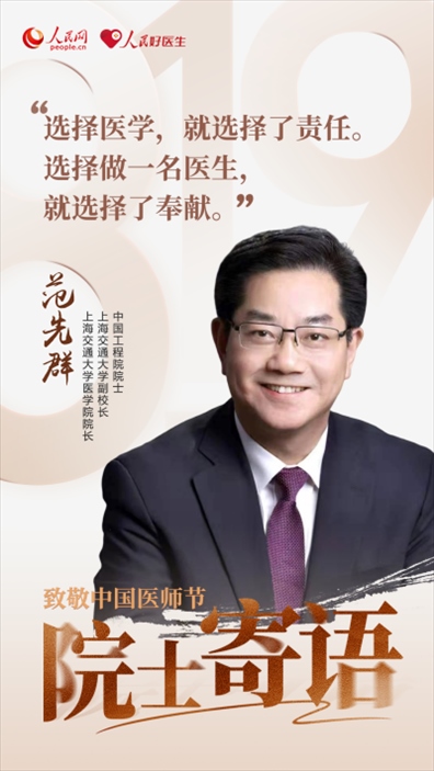 2023年8月19日是第六個(gè)中國(guó)醫(yī)師節(jié),今年醫(yī)師節(jié)的主題是“勇?lián)】凳姑T就時(shí)代新功”,大力弘揚(yáng)醫(yī)務(wù)工作者的崇高精神。值此之際,人民網(wǎng)、人民好醫(yī)生客戶端邀請(qǐng)中國(guó)工程院和中國(guó)科學(xué)院7位院士,為廣大醫(yī)務(wù)工作者們送上殷切的節(jié)日囑托。