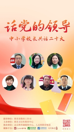 5月12日起,“人民網(wǎng)+”客戶端推出“中小學(xué)校長(zhǎng)共話二十大”專題節(jié)目,每日11:00上新,圍繞黨的領(lǐng)導(dǎo)、鑄魂育人、教育改革、教育公平、強(qiáng)師興校等話題述成績(jī)、言感悟、談現(xiàn)狀、話未來,切實(shí)把黨的二十大精神轉(zhuǎn)化為辦學(xué)治校、教書育人的實(shí)際行動(dòng)。讓我們一起傾聽全國百位中小學(xué)校長(zhǎng)共話二十大,共同描繪教育事業(yè)發(fā)展的新藍(lán)圖。