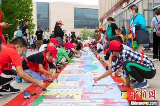 “六一”兒童節(jié)系列活動(dòng)期間,天津開展少年兒童百米長卷繪制活動(dòng)。王在御 攝