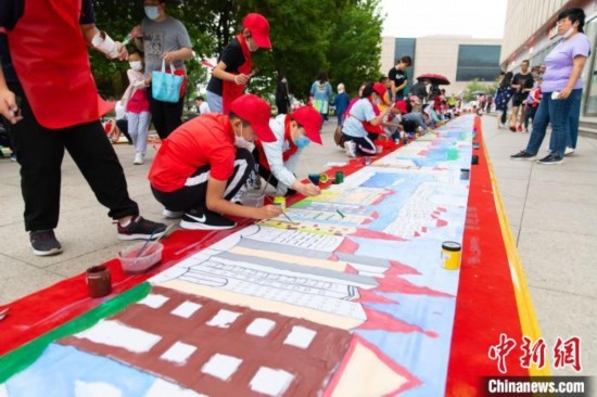 圖為天津市少年兒童百米長卷繪制活動(dòng)現(xiàn)場。王在御 攝