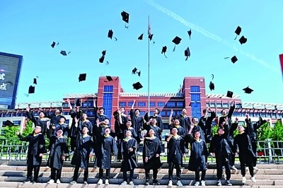6月3日,山東科技大學(xué)學(xué)生在拍攝畢業(yè)照。俞方平攝/光明圖片