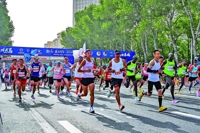 2023長春馬拉松比賽上,參賽選手從起點出發(fā)。新華社發(fā)