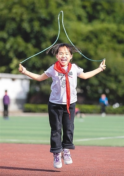 近年來,貴州省從江縣各中小學(xué)校堅(jiān)持確保學(xué)生每天鍛煉1小時(shí),促進(jìn)青少年兒童健康成長。圖為3月13日,從江縣剛邊壯族鄉(xiāng)中心小學(xué)學(xué)生在體育課上跳繩。羅京來攝(人民視覺)