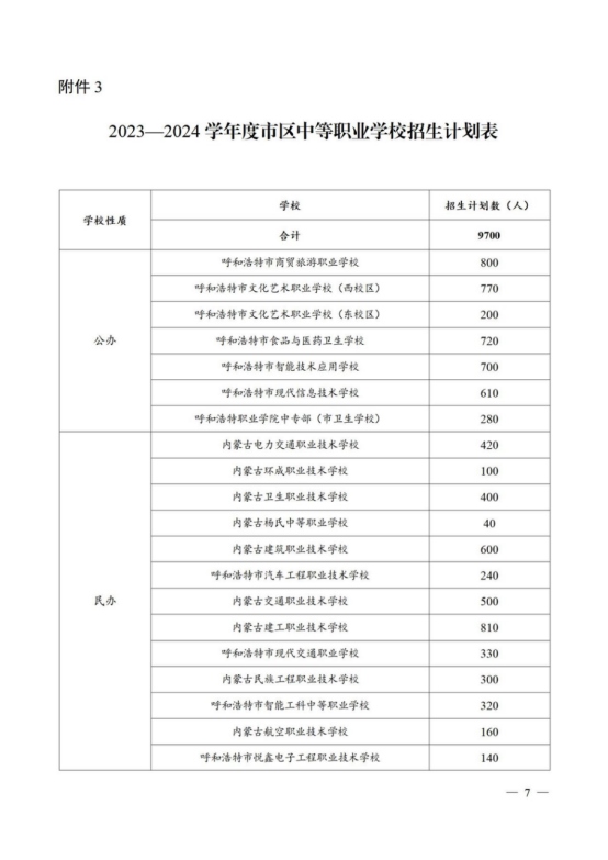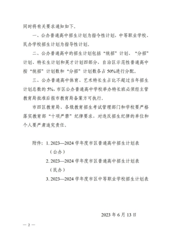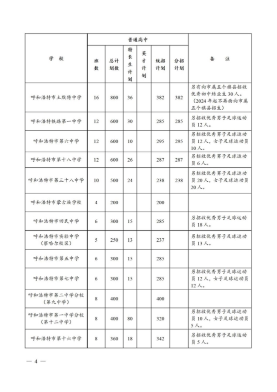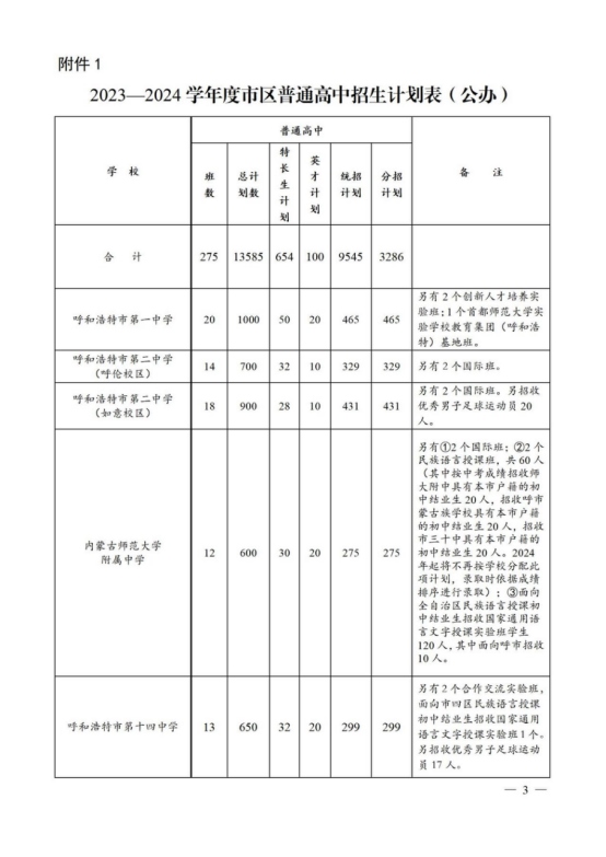 呼和浩特市區(qū)2023-2024學年度高中招生計劃公布