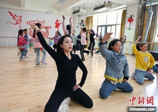 5月18日,四川阿壩州壤塘縣寄宿制學校學生參加舞蹈班。中新社記者 安源 攝