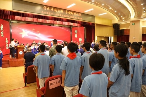 北京市第十一中學民樂團、合唱團學生帶領大家奏唱國歌。學校供圖