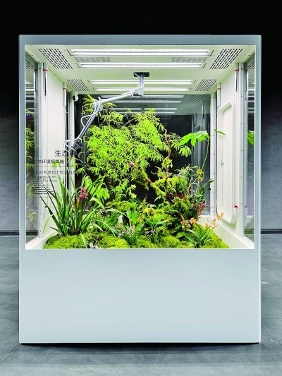 展廳一側(cè),三個(gè)立方體環(huán)境模擬艙并排放置,分別在近7立方米的空間內(nèi)模擬了雨林、海島、沙漠三種生態(tài)環(huán)境,引來(lái)許多觀眾圍觀?!霸诟邩橇至⒌亩际?,很多人都向往擁有一方屬于自己的自然天地。為人們?cè)谑覂?nèi)打造一片‘原始森林’便成了我們的使命?!逼放苿?chuàng)始人李軍介紹,設(shè)計(jì)過(guò)程中,團(tuán)隊(duì)遇到的一大的難點(diǎn)就是在保證室內(nèi)環(huán)境舒適度的同時(shí),讓各類(lèi)植物健康生長(zhǎng)?!巴ㄟ^(guò)設(shè)計(jì)師的努力,我們首次將人造太陽(yáng)光源、溫濕度控制、空氣流通、智能微噴等系統(tǒng)整合于室內(nèi)種植模擬環(huán)境中,實(shí)現(xiàn)了室內(nèi)種植智能化、自動(dòng)化、現(xiàn)代化?!崩钴姳硎荆鲈O(shè)計(jì)亦要遵循自然法則,“人與自然和諧共生”是團(tuán)隊(duì)始終不變的設(shè)計(jì)宗旨。