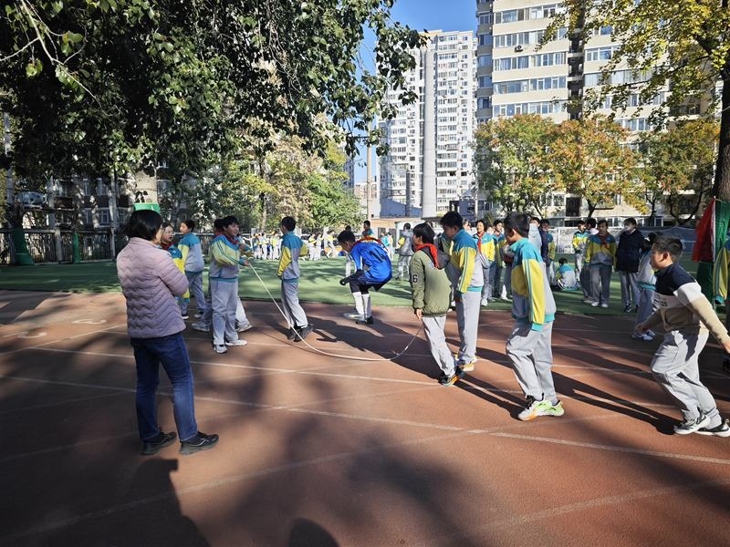 為了引導(dǎo)孩子們課間走出教室,北醫(yī)附小根據(jù)季節(jié)設(shè)計(jì)大型集體項(xiàng)目,比如秋季開展的跳長繩,老師們也參與進(jìn)來搖繩,帶動(dòng)更多孩子參加體育鍛煉?!白寣W(xué)生在課間得到充分休息、活動(dòng),才能保證學(xué)生的課堂狀態(tài),從而促進(jìn)課堂教育教學(xué)質(zhì)量提升。”田國英表示。