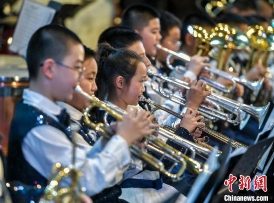 12月27日,新疆烏魯木齊市沙依巴克區(qū)教育系統(tǒng)“龍行龘龘 樂動童年”2024年交響管樂新年音樂會在該市青少年宮舉辦,來自烏魯木齊市第27小學(xué)的交響管樂團(tuán)演奏了《紅旗頌》、《茉莉花》等經(jīng)典曲目,并與絲路名師合唱團(tuán)合作演出《青春之舞》、《最炫民族風(fēng)》等曲目。據(jù)介紹,該交響管樂團(tuán)成立于2014年,規(guī)模從最初的40余人發(fā)展到現(xiàn)今近70人,團(tuán)員平均年齡10歲。