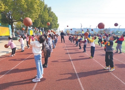 陶新明就在縣第五小學跟崗學習兩年,帶回了先進的教學模式和理念?!霸诮搪擉w支持下,我們校區(qū)目前已有兩名專職體育老師。我們在課后托管時間開設社團課,為有愛好和特長的學生系統地開設籃球、足球課,引導幫助他們全面發(fā)展?!碧招旅髡f。