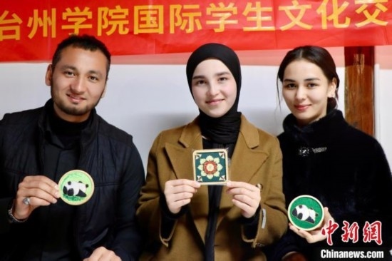 外國留學(xué)生展示制作完成的掐絲工藝畫。阮雅妮 攝