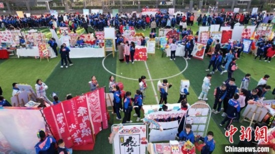 3月11日,學生們逛“廟會”。中新網(wǎng)記者 翟羽佳 攝